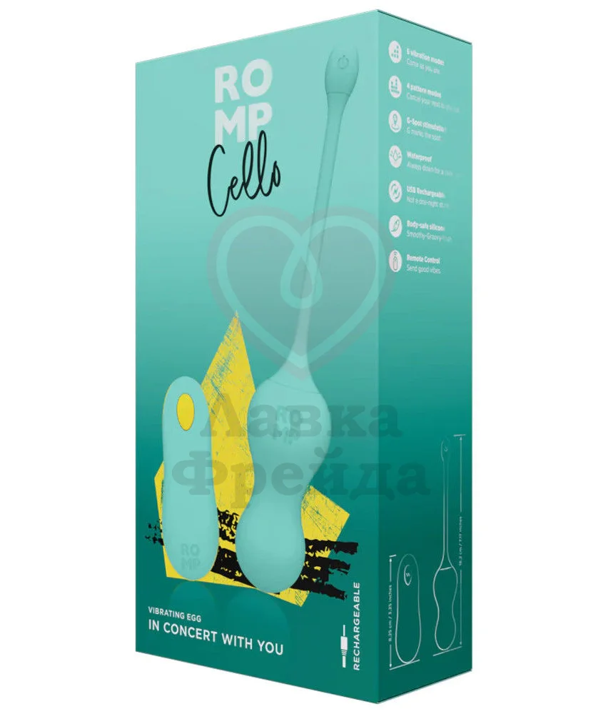 Виброяйцо Romp Cello – компактная игрушка с пультом дистанционного управления, чтобы играть удобно было не только соло, но и с партнером. Вытянутая форма имеет приятные изгибы, а также округлый кончик для плавного проникновения. Длина виброяйца без хвостика — 7 см, а максимальный диаметр — 3,9 см.