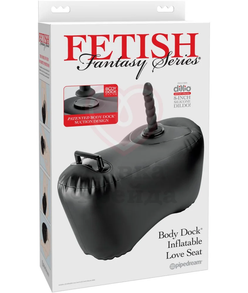 Надувная подушка Pipedream Body Dock Inflatable Love Seat идеально подходит для экспериментов с позами и ощущениями. Эргономичный дизайн поддерживает тело, встроенные ремешки надёжно фиксируют положение для максимальной устойчивости. В комплект входит фаллос на присоске, сделанный из бархатистого силикона. Также вогнутая платформа совместима с большинством других игрушек на присоске, диаметром до 8,6 см.