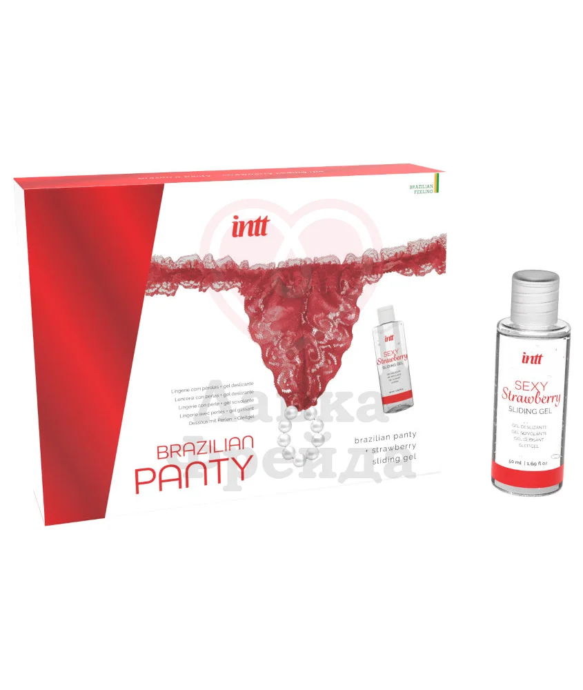 Набор Intt подойдет для соблазнительного вечера: в комплекте массажный гель Sliding Gel Strawberry со вкусом клубники и кружевные трусики с доступом и жемчужной нитью. Создайте возбуждающий образ при помощи белья и продолжите сладкую прелюдию с чувственных прикосновений даже к самым интимным местам. Гель Intt Sexy Srawberry обеспечит плавность скольжения и подойдет для оральных ласк — вкус клубники прекрасно дополнит вашу близость с партнером.