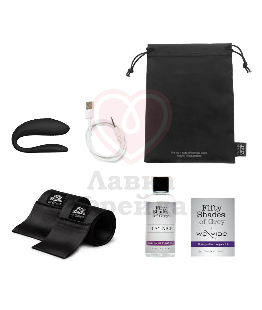 Набор Moving As One с игрушками от 50 оттенков серого и We-Vibe отлично подойдет для влюбленных: здесь все три атрибута интереснее использовать вместе с партнером. В комплект входит средство для массажа, ленты для связывания рук и самое главное - We-Vibe Sync Lite, вибратор для пары. Идеально для расслабляющего чувственного вечера наедине друг с другом!