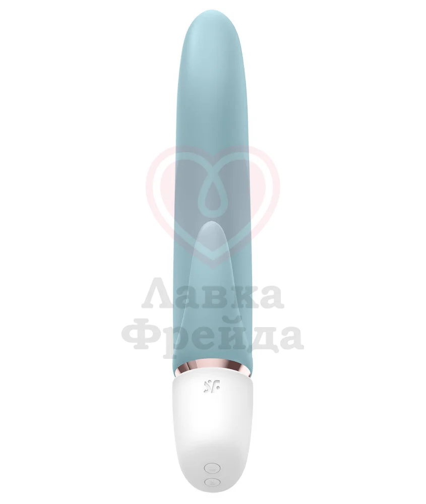 • Голубая насадка - вибратор с клиторальным стимулятором: имеет два моторчика в каждом кончике с 12 режимами вибрации. Общая длина составляет 19 см, длина проникновения 12,5 см, а максимальный диаметр 3,5 см. Самая эффективная стимуляция — двойное воздействие на зону G и головку клитора в одно игрушке.
