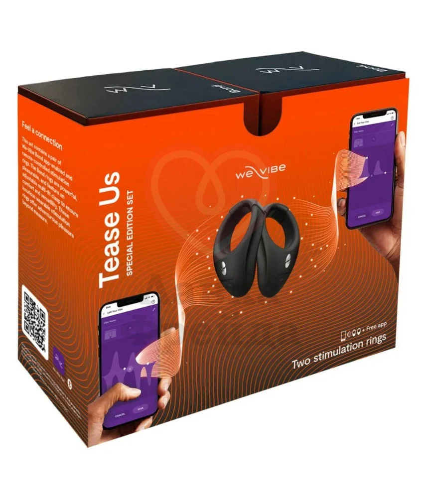 Набор We-Vibe Tease Us Set (Bond & Bond) включает в себя два эрекционных виброкольца Bond. Игрушка подходит для ношения, чтобы вы смогли насладиться особым возбуждающим взаимодействием. Довольно бесшумная работа моторов, дистанционное управление от приложения и универсальный размер — делают набор идеальным вариантом для любого любителя экспериментов не только в спальне, но и за её пределами. Окунитесь в мир соблазнительных фантазий вблизи или на расстоянии, управляя удовольствием!