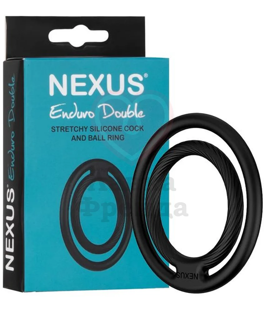 Двойное эрекционное кольцо Nexus Enduro Double изготовлено из приятного на ощупь медицинского силикона - материал, совместимый с лубрикантами только на водной основе. Аксессуар надевается на основание члена, препятствуя оттоку крови, что обеспечивает более крепкую и длительную эрекцию.