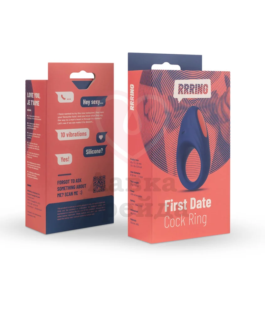 Эрекционное кольцо Rrring First Date Cock Ring имеет 10 вибро-режимов разной интенсивности. Во время соло-игры можно повернуть девайс язычком вниз, стимулируя мошонку. А в паре с женщиной - повернуть язычок вверх, лаская ее клитор. Перезаряжается через USB кабель. Выполнено из бархатистого, нежного на ощупь материала, совместимого с лубрикантами на водной основе. Чистить спреем для игрушек или водой с мылом.
