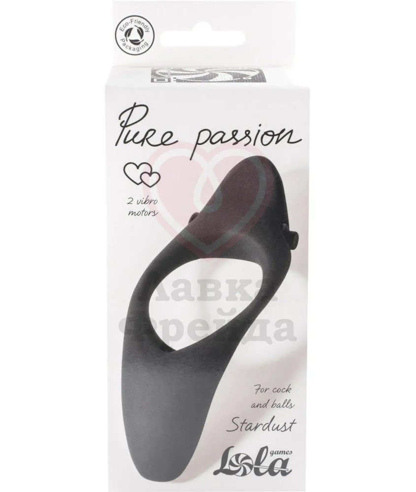 Lola Games Pure Passion Stardust - эрекционное кольцо, которое не только обеспечивает более крепкую и длительную эрекцию, но и усиливает наслаждение вибрацией и стимуляцией промежности. Помимо этого, верхний виброэлемент будет воздействовать на женский клитор, делая её оргазмы еще ярче. За вибрацию отвечают две съемные вибропули, каждая из которых работает от двух батареек типа LR41 (идут в комплекте). Эластичный силикон, из которого сделано кольцо, может использоваться с лубрикантом только на водной основе. Очищать мыльным раствором или антибактериальным спреем для игрушек.