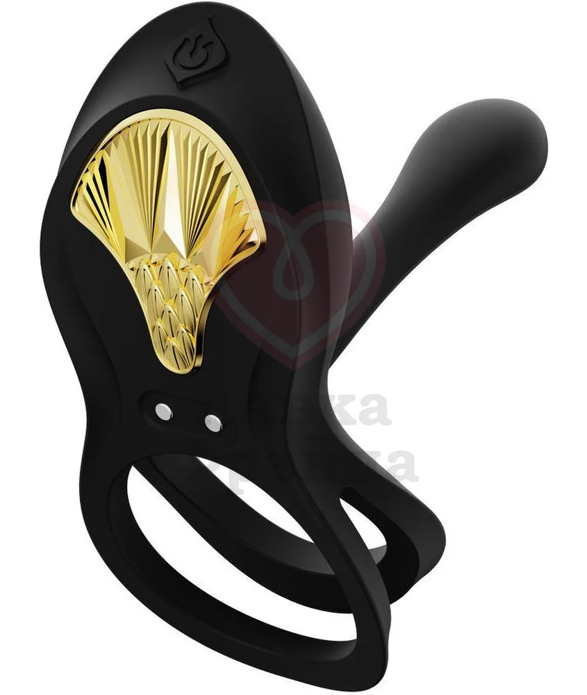 Zalo Bayek - двойное эрекционное кольцо чёрного цвета с 8 вибро-режимами и дизайном, вдохновлённым мифами Древнего Египта. Эргономичная конструкция усиливает естественную эрекцию, а вибрационная часть обеспечивает интенсивный массаж и дополнительную стимуляцию клитора партнёрши.