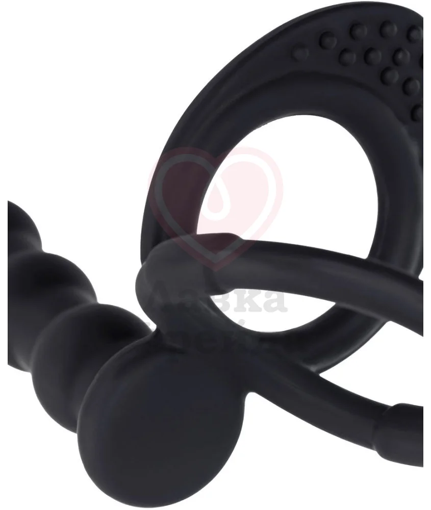 Лаконичная чёрная насадка на член Black Red by Toyfa - это анальная ёлочка, состоящая из пяти "звеньев", и два эрекционных кольца, верхнее из которых имеет фактурную поверхность с пупырышками, для дополнительной стимуляции клитора партнерши во время секса. Одно кольцо устанавливается на основании ствола, а второе обхватывает яички, замедляя наступление оргазма.