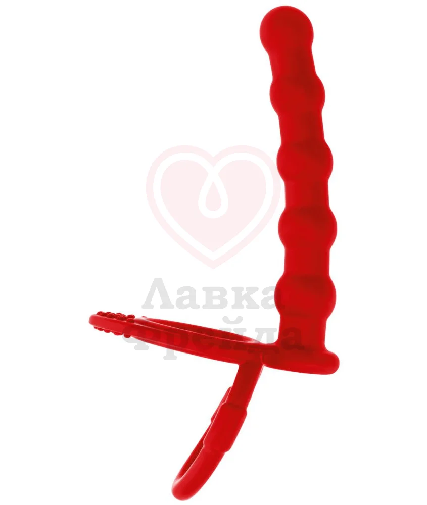 Ярко-красная насадка на член Black Red by Toyfa - это анальная ёлочка из пяти "звеньев", и два эрекционных кольца, верхнее из которых имеет фактурную поверхность с пупырышками, предназначенное для дополнительной стимуляции клитора партнерши во время проникновения.