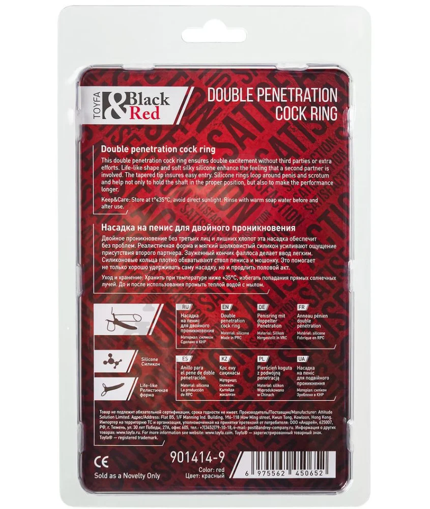 Ярко-красная насадка Black Red by Toyfa позволит вам порадовать партнёршу двойным, вагинально-анальным проникновением, без привлечения третьего человека в вашу постель. Аксессуар крепится на основание фаллоса и за мошонку с помощью эластичных эрекционных колец, диаметр которых 3,5 и 5,5 см.