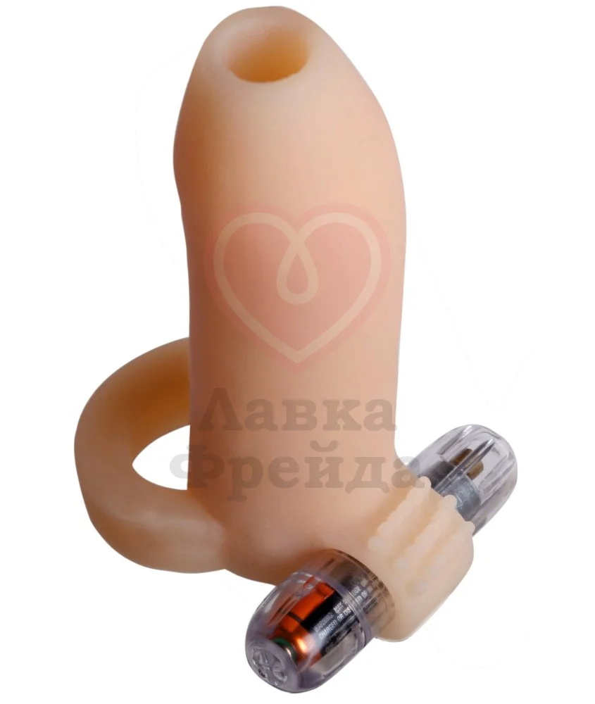 Снизу насадки расположено кольцо, которое используется для надежного закрепления, а также для дополнительных ощущений. Сверху же находится специальное место для вибропули, которая будет оказывать стимуляцию для обоих партнеров, усиливая общее возбуждение. Игрушка работает от батареек, которые есть в комплекте.