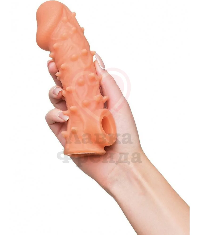 Размер Large поможет увеличить член на 2 — 2,5 см в длину и на 30% прибавит к диаметру, внешний диаметр игрушки 4,5 см, а общая длина 17,5 см. Для безопасного секса производитель рекомендует очищать насадку до и после применения с добавлением специального средства для игрушек. А для продления срока службы материала после высыхания обработать тальком для игрушек.