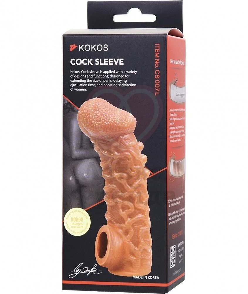 Насадку Kokos Cock Sleeve CS007-L можно использовать для увеличения члена партнёра или секс-игрушки вроде фаллоимитатора. Насадка выполнена в реалистичном дизайне, но с более объёмной рельефной головкой, ярко выраженными венками и бугорками для дополнительных приятных ощущений во время проникновения. Так как насадка полностью закрытая, то чувствительность члена снизится, повысив продолжительность секса.