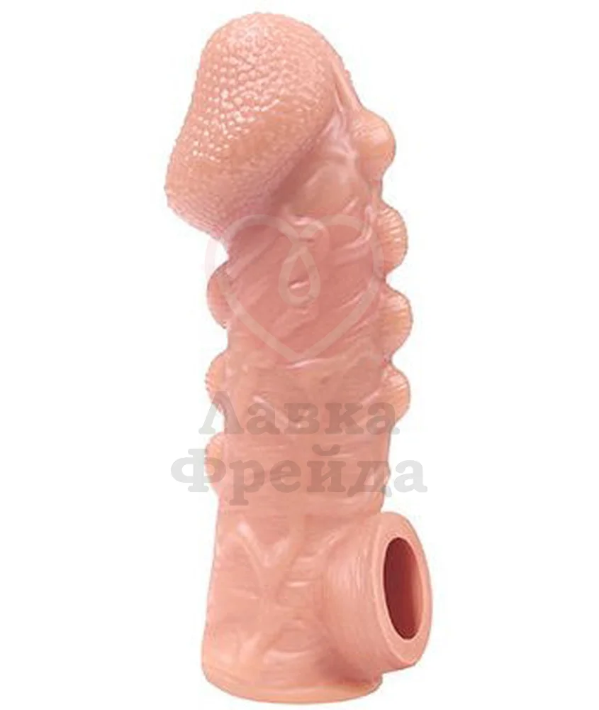 Размер Large поможет увеличить член на 2 — 2,5 см в длину и на 30% прибавит к диаметру, внешний диаметр игрушки 4,5 см, а общая длина 17,5 см. Для безопасного секса производитель рекомендует очищать насадку до и после применения с добавлением специального средства для игрушек. А для продления срока службы материала после высыхания обработать тальком для игрушек.