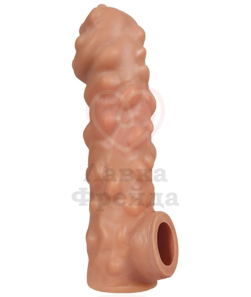 Размер Large поможет увеличить член на 2 — 2,5 см в длину и на 30% прибавит к диаметру, внешний диаметр игрушки 4,5 см, а общая длина 17,5 см. Для безопасного секса производитель рекомендует очищать насадку до и после применения с добавлением специального средства для игрушек. А для продления срока службы материала после высыхания обработать тальком для игрушек.