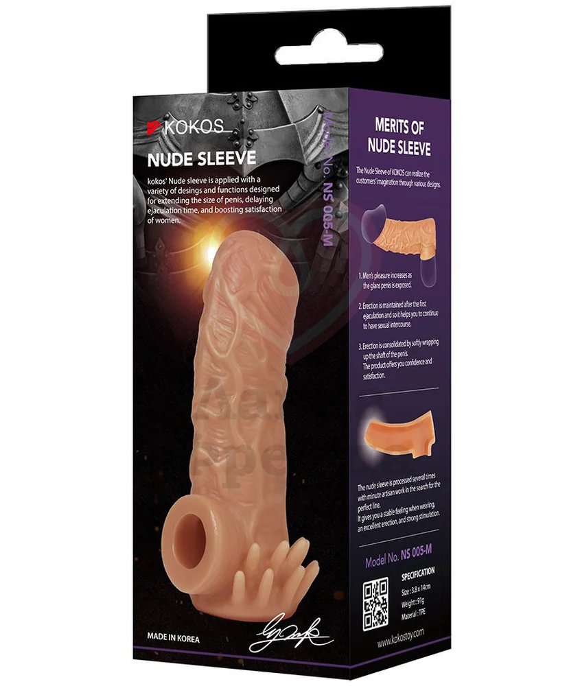 Насадка Kokos Nude Sleeve NS005-S оставляет открытой головку, не снижая тем самым чувствительность. Классическая форма с набухшими венками увеличит диаметр, а усики в основании будут стимулировать клитор партнерши, добавляя эффект новизны в интимную жизнь.