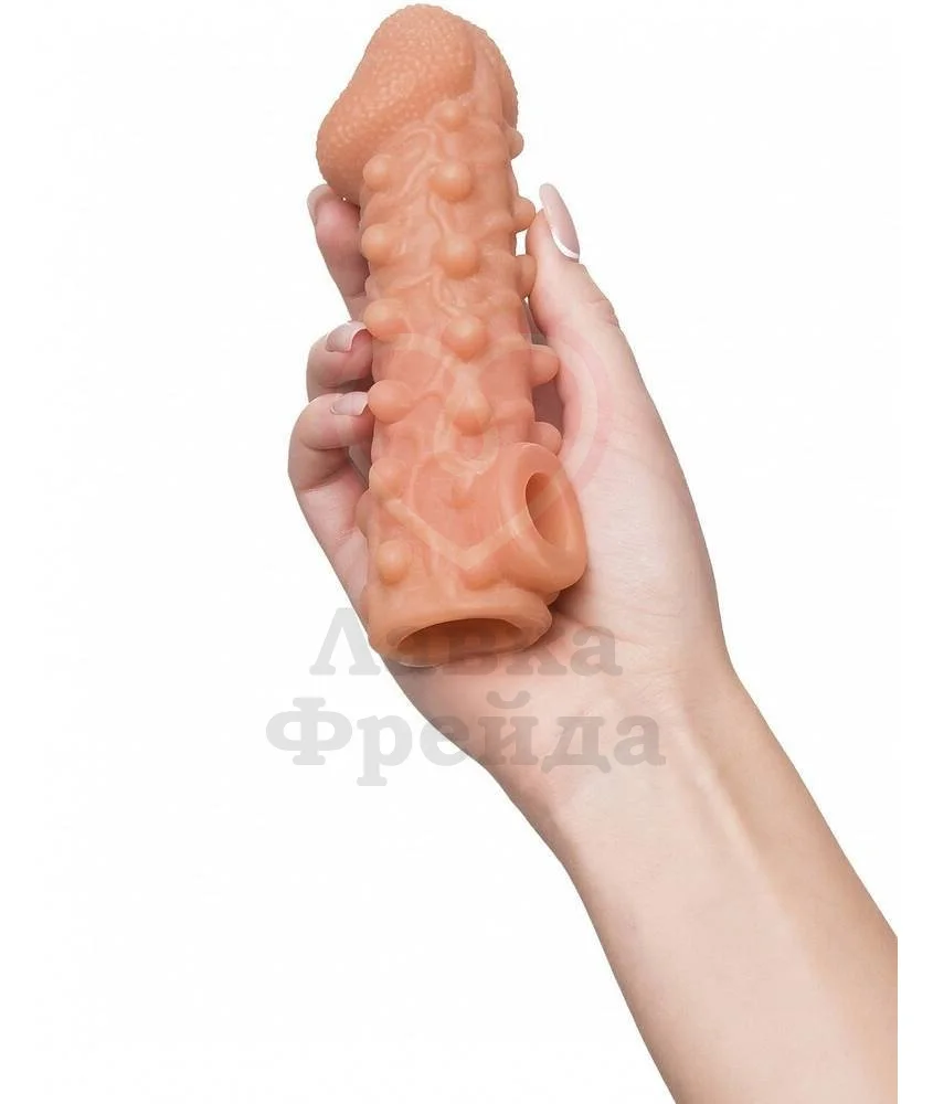 Размер Medium поможет увеличить член на 2 — 2,5 см в длину и на 30% прибавит к диаметру, внешний диаметр игрушки 4 см, а общая длина 15,5 см. Для безопасного секса производитель рекомендует очищать насадку до и после применения с добавлением специального средства для игрушек. А для продления срока службы материала после высыхания обработать тальком для игрушек.