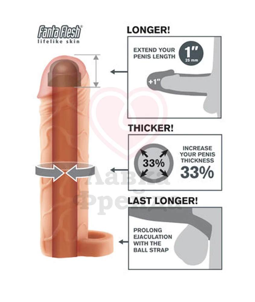 Насадка удлинитель Perfect 1'' Extension with Ball Strap - супер эластичная, мягкая и ультра - реалистичная. Находка для любого мужчины, чтобы удивить свою вторую половинку и подарить новые ощущения: более глубокое и полное проникновение. Ощущается, как вторая кожа доставляя удовольствие обоим партнёрам. Мягкое кольцо фиксируется на мошонке задерживая эякуляцию и обеспечивая безопасность во время фрикций. Удлиняет на 25 мм, увеличивает диаметр мужского достоинства на 33 %. Цвет: Телесный. Размер: длина - 17,7 см, диаметр - 4,4 см; внутренний минимальный диаметр - 2,7 см. Материал: TPE-Elastomer.