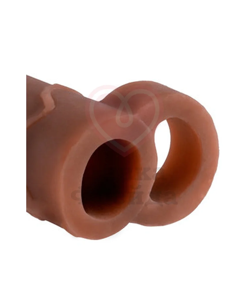 Насадка удлинитель Perfect 2'' Extension with Ball Strap - супер эластичная, мягкая и ультра - реалистичная. Находка для любого мужчины, чтобы удивить свою вторую половинку и подарить новые ощущения: более глубокое и полное проникновение. Ощущается, как вторая кожа доставляя удовольствие обоим партнёрам. Мягкое кольцо фиксируется на мошонке задерживая эякуляцию и обеспечивая безопасность во время фрикций. Удлиняет на 51 мм, увеличивает диаметр мужского достоинства на 33 %. Цвет: Коричневый. Размер: длина - 19 см, диаметр - 4,4 см; внутренний минимальный диаметр - 2,7 см. Материал: TPE-Elastomer.