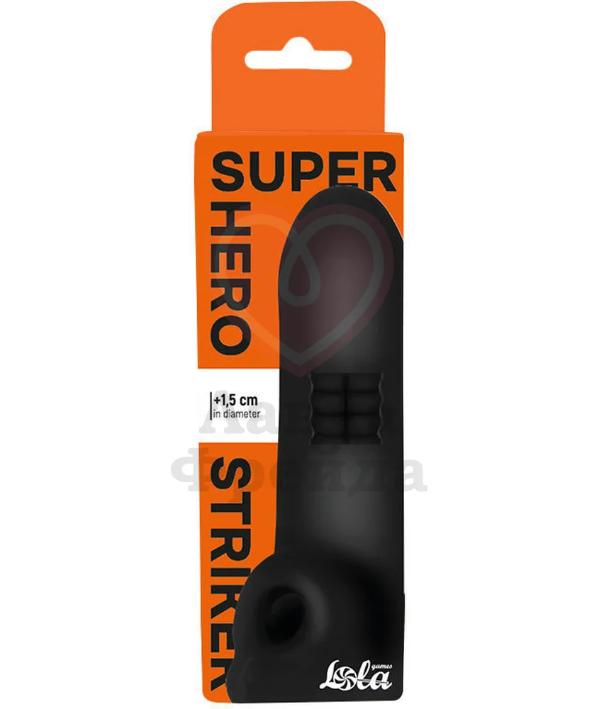 Lola Games Super Hero Striker Black - удлиняющая насадка для мужского ствола, изготовленная из тактильно приятного термопластичного эластомера чёрного цвета. Материал плотно прилегает к фаллосу, адаптируясь к его форме и обеспечивая эффект второй кожи. Фактурная внутренняя часть обеспечивает дополнительную стимуляцию члена во время проникновения. Эластичное кольцо в основании надежно фиксирует изделие на мошонке, а также оттягивает эякуляцию, работая как эрекционное кольцо. Общая длина - 13,5 см. Для более комфортного надевания нанесите смазку на водной основе внутрь насадки, а непосредственно перед близостью - еще и снаружи.