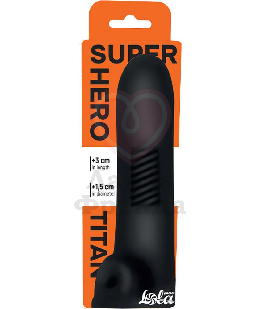 С насадкой Lola Games Super Hero Titan Black вы сможете удлинить ствол на 3 см, а его диаметр станет больше на 1,5 см. Изготовлена из чёрного термопластичного эластомера, который плотно прилегает к телу, обеспечивая эффект второй кожи. Фактурная внутренняя поверхность изделия дополнительно стимулирует фаллос во время интимной близости, а фиксирующее кольцо, размещаемое под яичками, продлевает половой акт, выступая в роли эрекционного кольца. Общая длина аксессуара - 16,5 см. Материал насадки совместим с лубрикантами только на водной основе - гель необходимо нанести внутрь, перед тем, как надеть устройство, и сверху, перед проникновением.