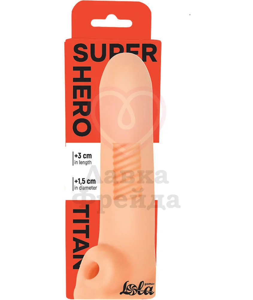 Насадка Lola Games Super Hero Titan Beige позволяет удлинить ствол на 3 см, а его диаметр станет больше на 1,5 см. Изготовлена из термопластичного эластомера телесного цвета, который плотно прилегает к фаллосу, обеспечивая эффект второй кожи. Фактурная внутренняя поверхность изделия дополнительно стимулирует ствол во время интимной близости, а фиксирующее кольцо, размещаемое под яичками, продлевает половой акт, выступая в роли эрекционного кольца. Общая длина аксессуара - 16,5 см. Материал насадки совместим с лубрикантами только на водной основе - гель необходимо нанести внутрь, перед тем, как надеть устройство, и сверху, перед проникновением.