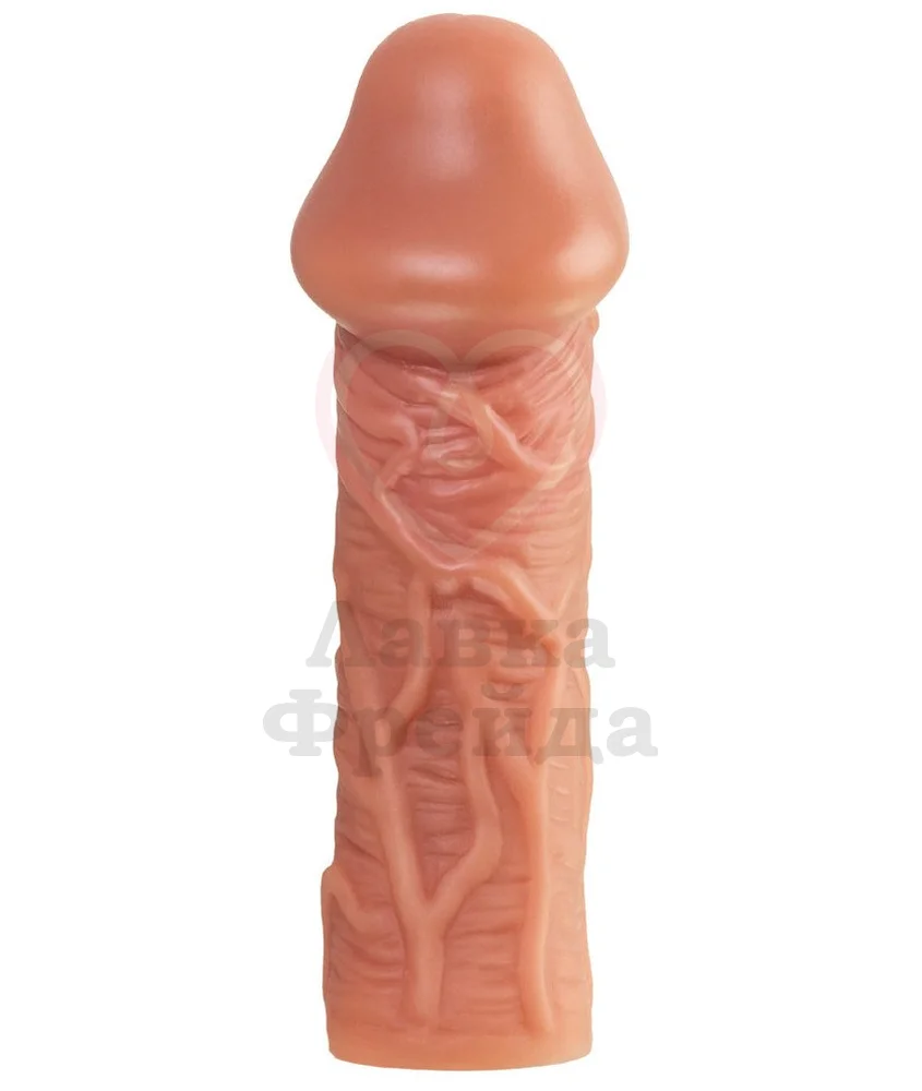 Дизайн игрушки выполнен в анатомическом стиле, ярко подчеркивая головку и рельефные вены для дополнительных ощущений. Это насадка закрытого типа, она не только увеличит длину и объем члена, но и поможет снизить чувствительность мужчины, продлевая ваш секс. Наслаждайтесь друг другом еще сильнее и дольше.