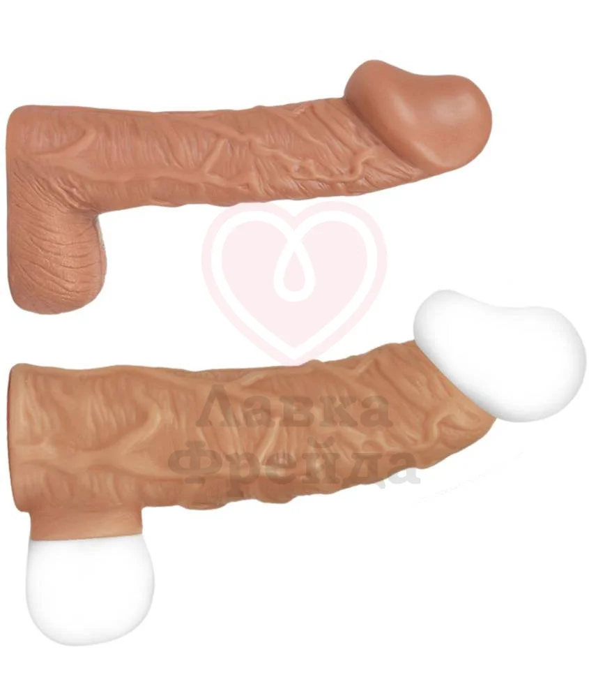 В этой версии насадки есть также отверстие для мошонки, что обеспечит ещё более надёжное закрепление, а также дополнительную стимуляцию для мужчины. Эластичный плотный материал выдержит любую эрекцию, а также доставит приятные ощущения своей нежной, бархатистой текстурой, напоминающей на ощупь настоящую кожу.