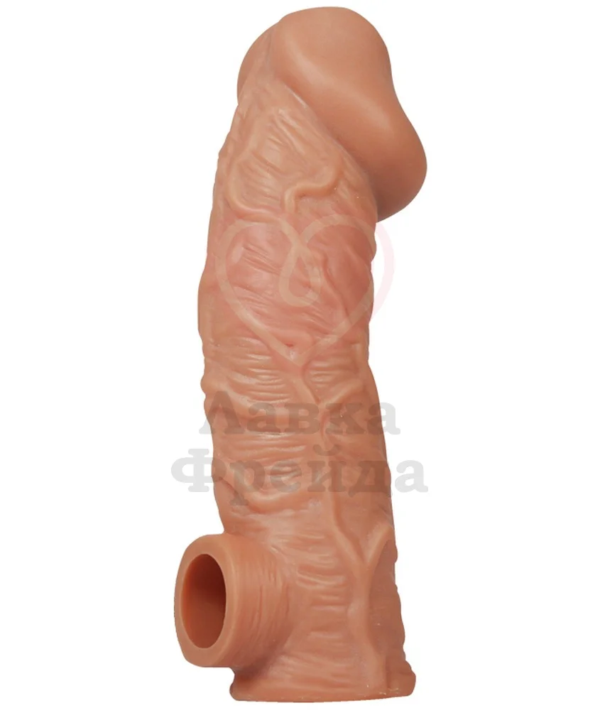 Размер Large поможет увеличить член на 2 — 2,5 см в длину и на 30% прибавит к диаметру, внешний диаметр игрушки 4,5 см, а общая длина 17,5 см. Для безопасного секса производитель рекомендует очищать насадку до и после применения с добавлением специального средства для игрушек. А для продления срока службы материала после высыхания обработать тальком для игрушек.