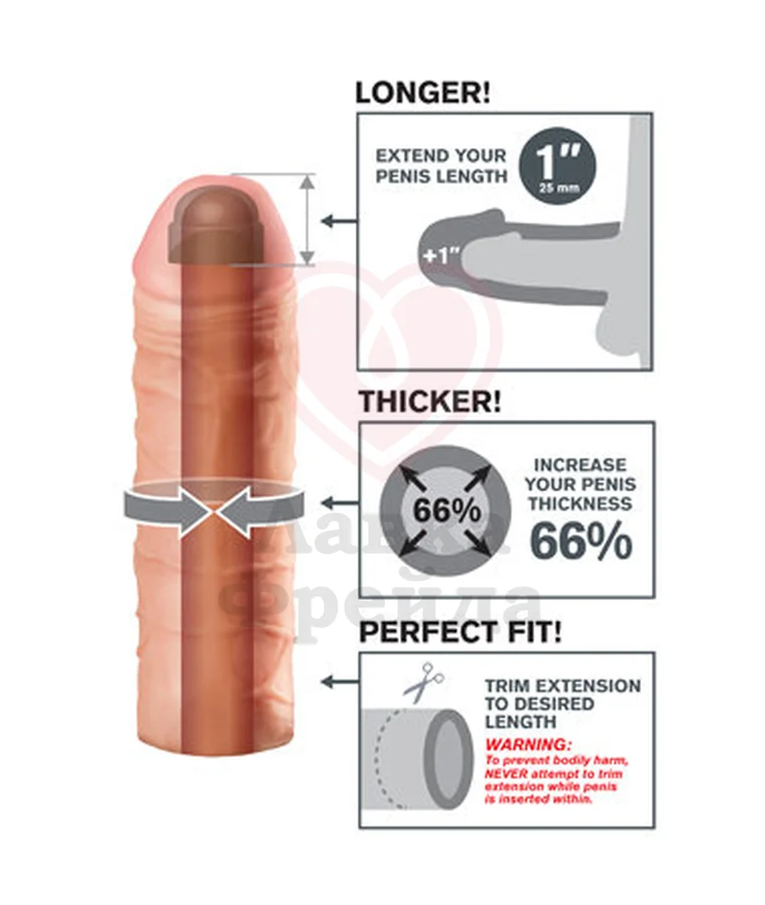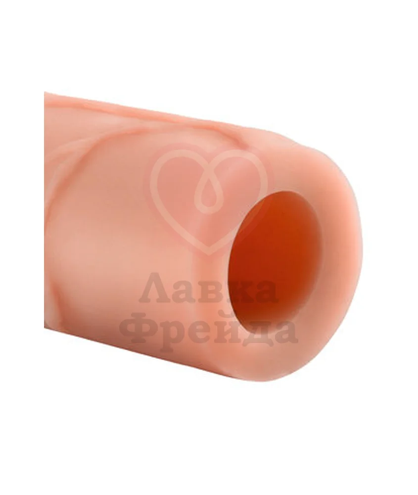 Насадка удлинитель Mega 1'' Extension - супер эластичная, мягкая и ультра - реалистичная. Находка для любого мужчины, чтобы удивить свою вторую половинку и подарить новые ощущения: более глубокое и полное проникновение. Ощущается, как вторая кожа доставляя удовольствие обоим партнёрам. Легко обрезается у основания для идеальной подгонки размера. Используется на вибраторы и фаллоимитаторы. Удлиняет на 25 мм, увеличивает диаметр мужского достоинства на 66 %. Цвет: Телесный. Размер: длина - 17,7 см, диаметр - 4,8 см; внутренний минимальный диаметр - 3 см. Материал: TPE-Elastomer.