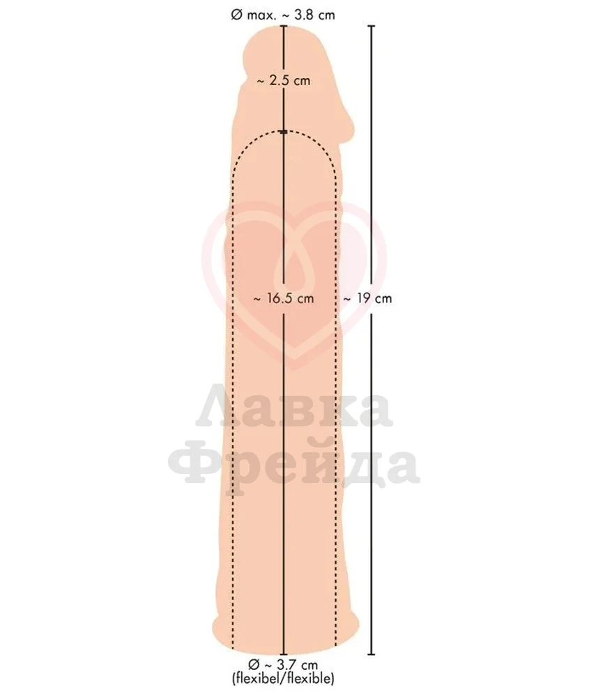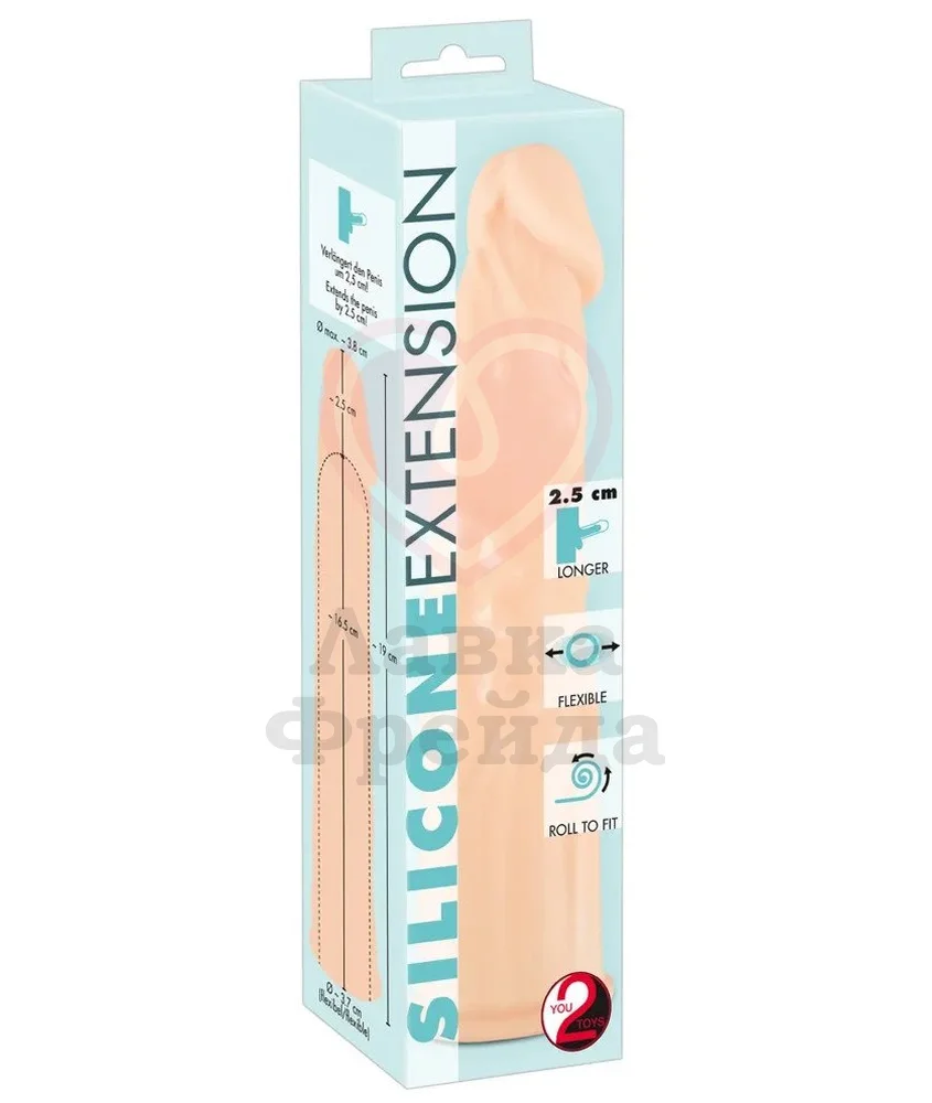 Супер-мягкая и реалистичная насадка You2Toys выполнена из нежного материала и поможет вам увеличить член по длине. Общая длина игрушки составляет 19 см, что дает прибавку в 2,5 см к длине вашего члена при проникновении. Длина внутреннего отверстия 16,5 см, лишний материал можно завернуть до подходящей плотной посадки.