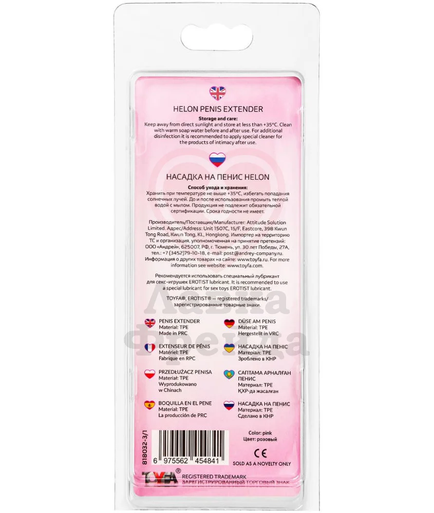 Внешняя часть насадки A-Toys by Toyfa Helon дополнена реалистичной фактурной головкой и кольцом из массажных шипов под ней - элементы будут стимулировать внутренние эрогенные зоны вашей партнёрши, ускоряя приближение кульминации. Тактильно приятный материал изделия (термопластичный эластомер) хорошо тянется, обеспечивая комфортную посадку и не соскальзывая во время близости. Для большего удобства нанесите внутрь немного лубриканта на водной основе. Очищайте тёплой водой с мягким мылом, а затем обработайте специализированным антибактериальным спреем.