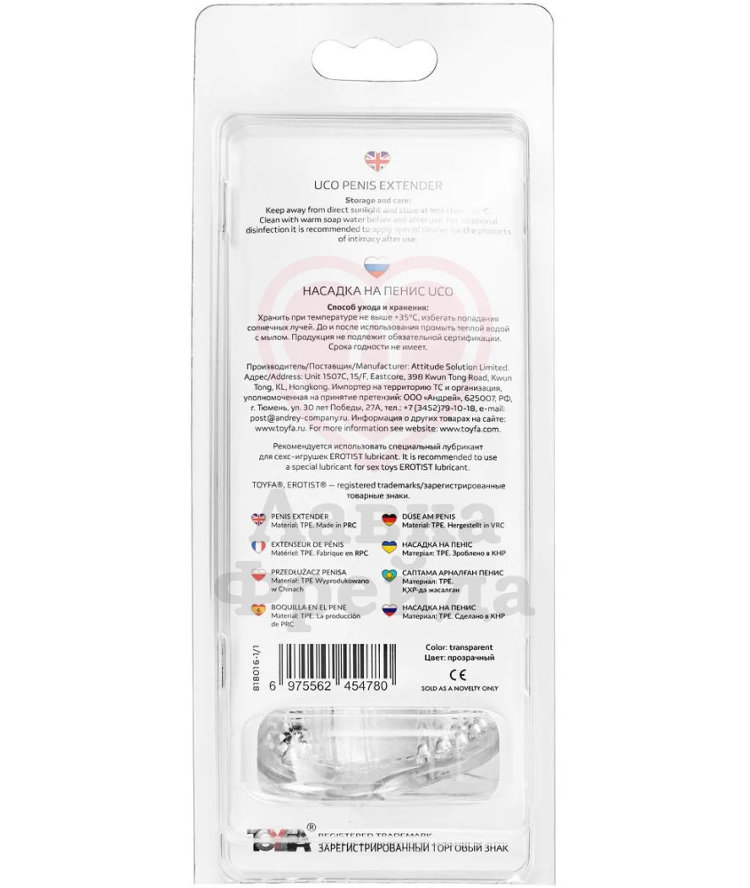 С помощью насадки A-Toys by Toyfa Uco вы не только продлите половой акт, но и сделаете член длиннее и толще. Внешняя часть - объёмная головка, двойная цепочка массажных бусин по окружности ствола и в основании, а также специальный отросток, предназначенный для точечной стимуляции клитора партнёрши.
