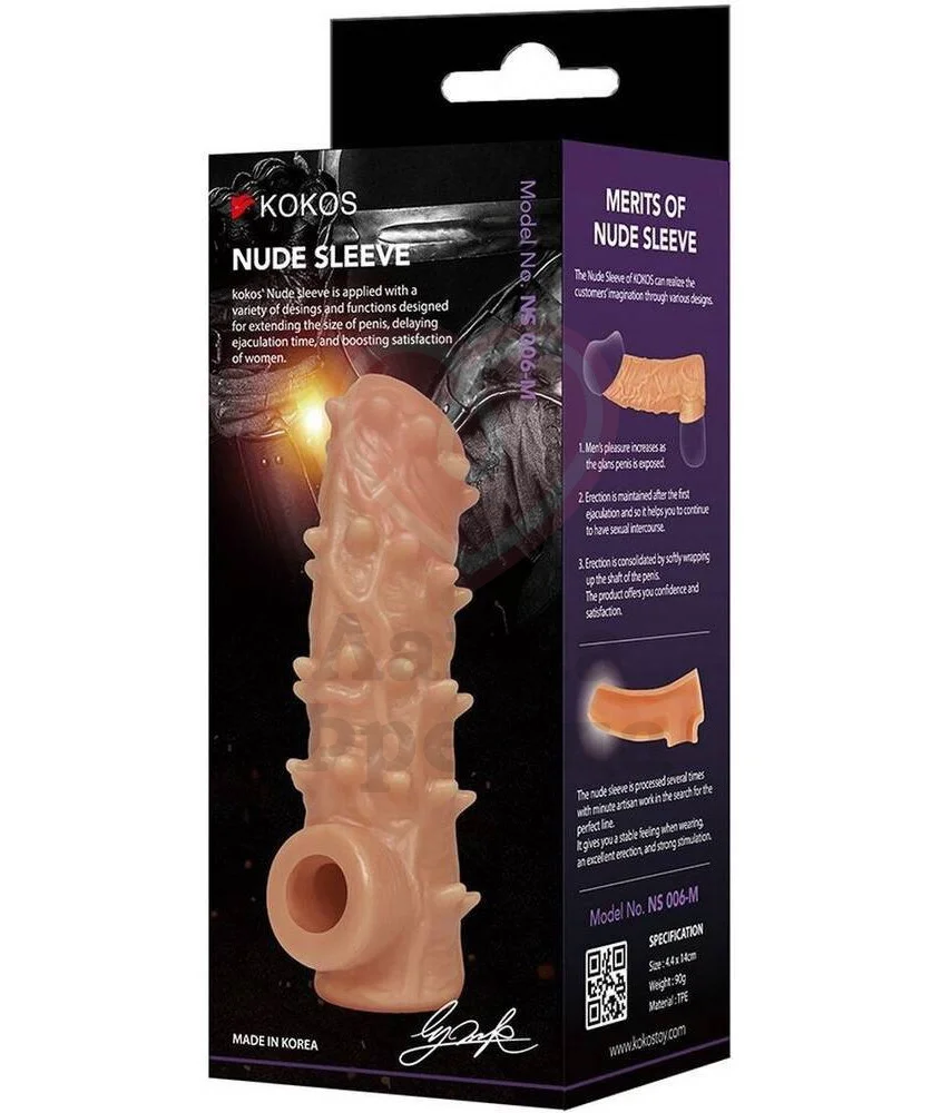 Насадка Kokos Nude Sleeve NS006-L оставляет открытой головку, не снижая тем самым чувствительность. Классическая форма с набухшими венками увеличит диаметр, а пупырышки по всей поверхности будут стимулировать эрогенные зоны партнерши, добавляя эффект новизны в интимную жизнь.