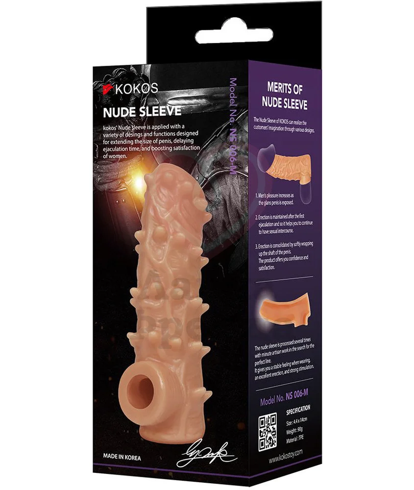 Насадка Kokos Nude Sleeve NS006-S оставляет открытой головку, не снижая тем самым чувствительность. Классическая форма с набухшими венками увеличит диаметр, а пупырышки по всей поверхности будут стимулировать эрогенные зоны партнерши, добавляя эффект новизны в интимную жизнь.
