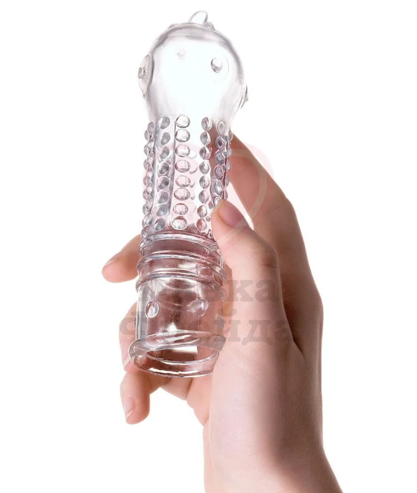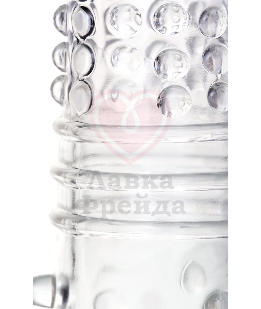 Насадка Toyfa A-Toys — игрушка, которая разнообразит ощущения во время секса за рельефной поверхности. Длина проникновения составляет 14,5 см, а максимальный диаметр 3,5 см. Материал игрушки — прозрачная термопластичная резина — мягкий материал, покрытый объемными точками и ребрышками для дополнительной стимуляции по время применения. Совмещайте насадку с любыми лубрикантами, а очищайте водой с мылом и дополнительными средствами.