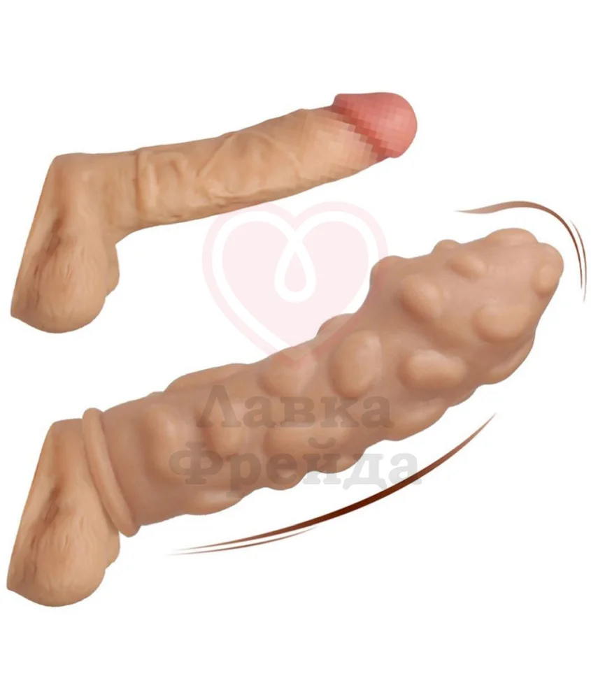 Насадка Kokos Extreme Sleeve ES008-M с выпуклыми крупными бугорками по всей длине не только увеличит размер фаллоса, но и будет дополнительно стимулировать эрогенные зоны партнерши. За счет толщины материала немного снизится чувствительность, тем самым продлевая занятия любовью. Все это добавит новизны в интимную жизнь. Длина насадки размера M - 14,5 см.