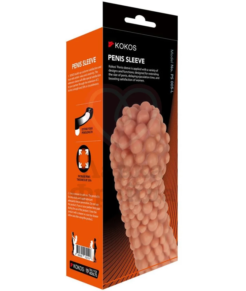 Реалистичная насадка Kokos Penis Sleeve PS005-L размера L подойдет как для увеличения члена, так и в качестве дополнительной насадки для фаллоимитатора. Общая длина игрушки составляет 16,5 см, а максимальный диаметр 5,5 см. Насадка выполнена из мягкого материала - термопластичного эластомера, который имитирует ощущения настоящей кожи.