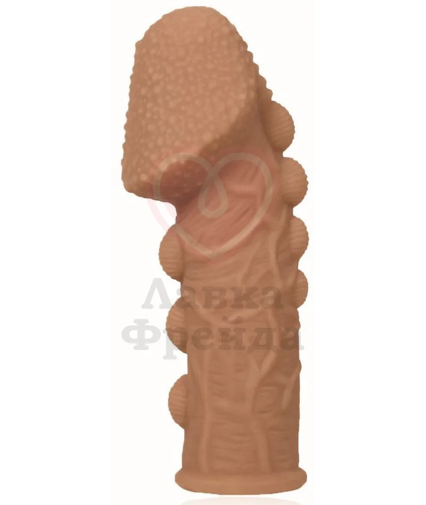 Насадка Kokos Extreme Sleeve ES009-S меет увеличенную текстурированную головку, набухшие вены по всей поверхности и выпуклые бугорки - все это стимулирует эрогенные зоны партнерши, добавляя эффект новизны в интимную жизнь. За счет толщины материала немного снизится чувствительность, тем самым продлевая занятия любовью. Длина насадки размера S - 12,7 см.