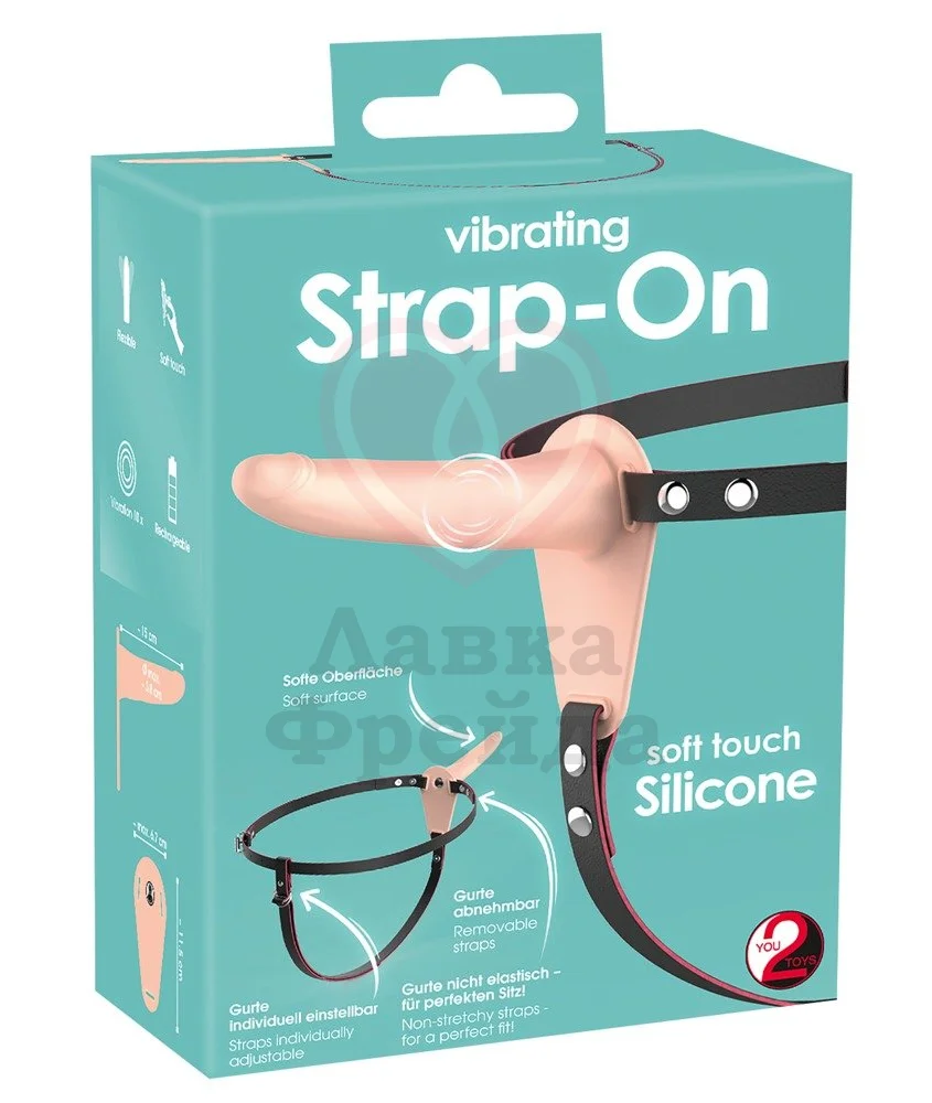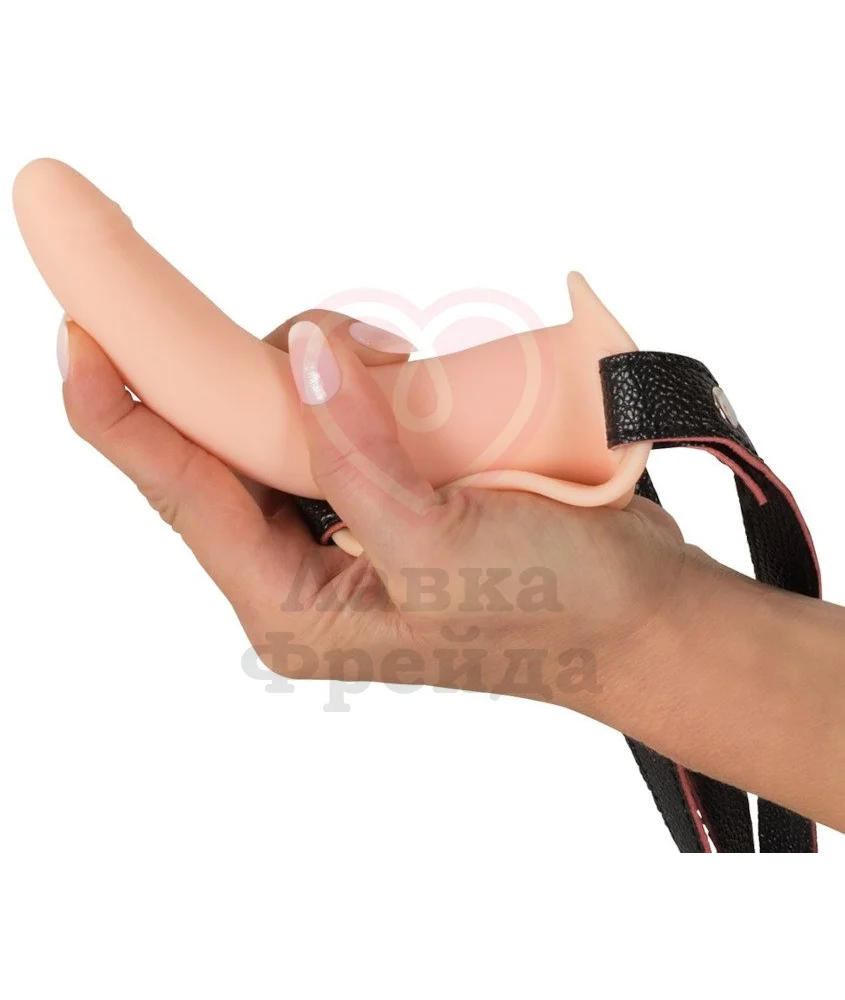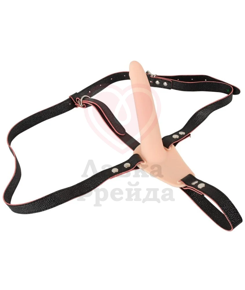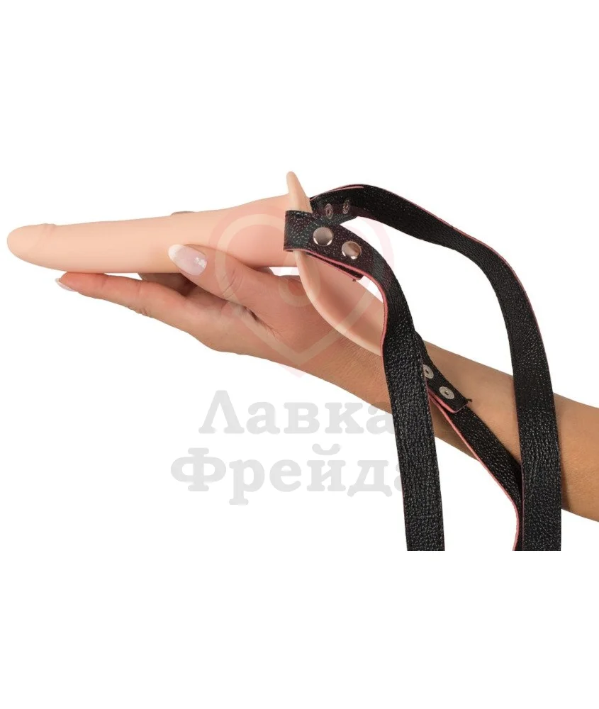 Этот небольшой страпон представляет собой гладкую насадку из телесного медицинского силикона, которая закреплена на ремешках для удобного использования. Ремешки страпона можно регулировать по размеру. Длина вибратора небольшая — 15 см, максимальный диаметр 4 см у самого основания.
