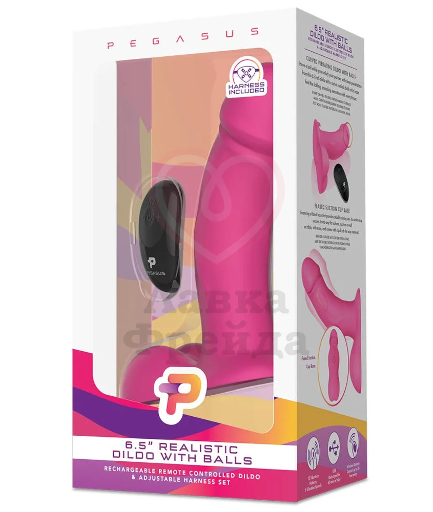 Комплект Pegasus Realistic Dildo включает в себя вибратор для страпона с трусиками-ремешками с креплением колечко. Реалистичная насадка выполнена из медицинского силикона и имеет красивую округлую форму с выраженной головкой, слегка рельефным стволом, мошонкой и широким плоским основанием. Длина проникновения составит 15,5 см, а максимальный диаметр 4,5 см.