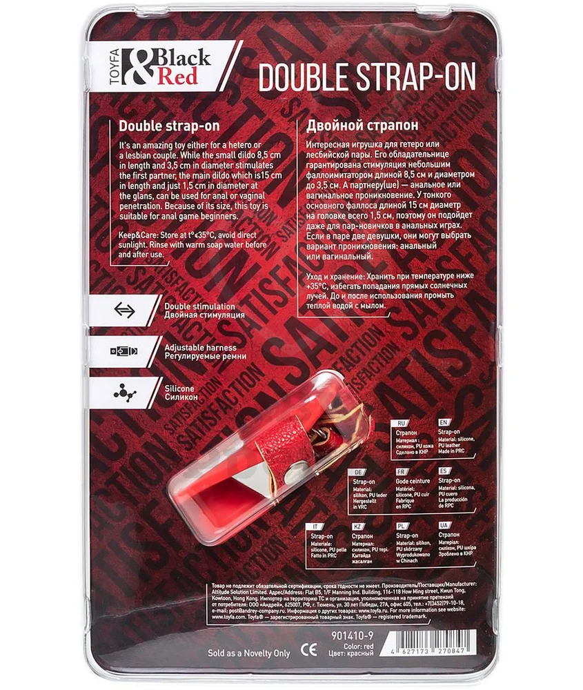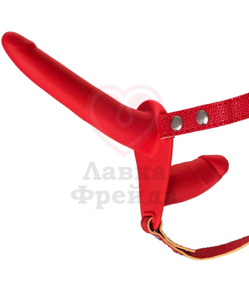 Ярко-красный страпон Black Red by Toyfa имеет три тонких ремня, сделанных из приятной на ощупь полиуретановой кожи, и удобные пряжки для регулировки размера. Игрушка предназначена для обоих любовников - меньший отросток, длиной 8,5 см и диаметром до 3,5 см, будет стимулировать вагину ведущей партнёрши, а больший ствол предназначен для вагинального или анального проникновения во второго игрока на любовном поле.