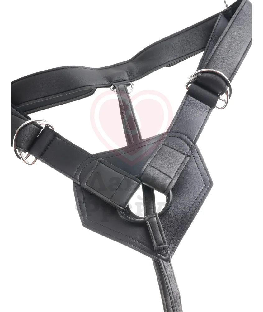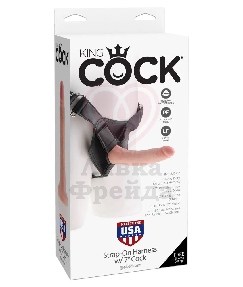 Прочные металлические кольца, фиксирующие ремни и страпон, позволят насладиться очень активной игрой. Игрушка оснащена присоской, поэтому надежно крепится в специальном основании. Имитатор изготовлен из ПВХ без добавления фталатов, полностью безопасен для здоровья и может использоваться с любыми смазками. Трусы подходит на любой обхват талии до 132 см.