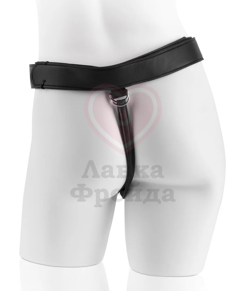 Прочные металлические кольца, фиксирующие ремни и страпон, позволят насладиться очень активной игрой. Игрушка оснащена присоской, поэтому надежно крепится в специальном основании. Имитатор изготовлен из ПВХ без добавления фталатов, полностью безопасен для здоровья и может использоваться с любыми смазками. Трусы подходит на любой обхват талии до 132 см.