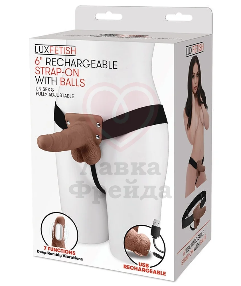 Страпон перезаряжаемый, кабель USB идет в комплекте. Игрушку можно совмещать с лубрикантами для более плавного проникновения, а также очищать до и после применения со специальными средствами.