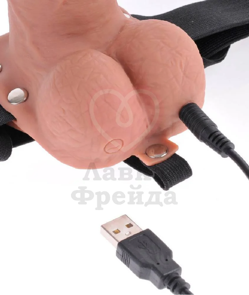 Игрушка дополнена функцией вибрации, которая включается кнопкой, расположенной на левом яичке - на неё нужно нажать и удержать в течение 3-х секунд. Также этой кнопкой можно переключать 10 интенсивных режимов вибрации. Пультом ДУ можно управлять страпоном на расстоянии. Для очистки используйте небольшое количество теплой воды и мыла, либо антибактериальные
