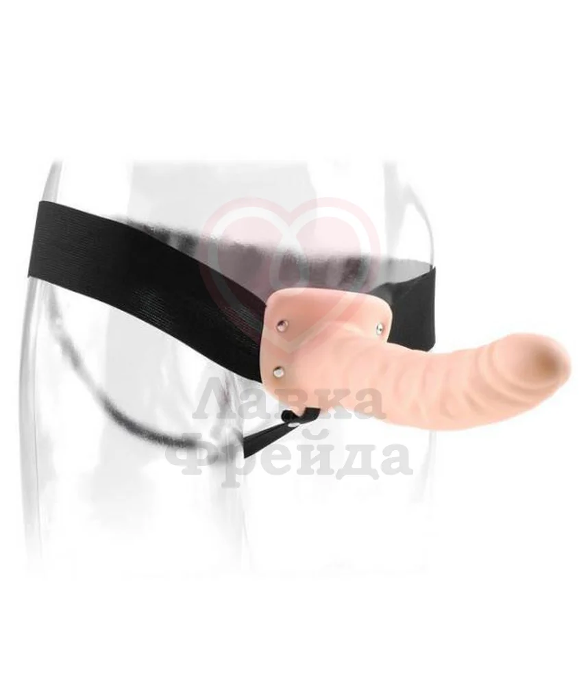 Pipedream Hollow Strap-on можно использовать и как фаллопротез для мужчины, и как страпон для женщины. Внутри имеется полость длиной 15 см и диаметром 4 см для удобного размещения там члена. Внешняя длина 20 см и диаметр 5 см. Страпон крепится на эластичных регулируемых по длине ремнях от 66 см до 117 см.