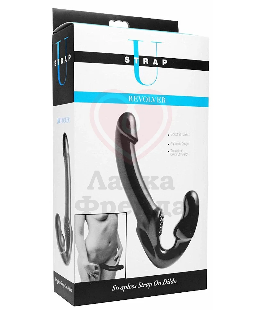Для использования безремневого страпона Strap U Revolver вам не понадобятся трусики или лишние ремешки, сама конструкция выполнена таким образом, чтобы между вами и вашим партнёром не было никаких преград. Ведущая сторона удерживает страпон при помощи вагинальных мышц и небольшой округлой части игрушки, длиной 10 см и диаметром 3 см, а также получает дополнительную стимуляцию за счет небольшой рельефной поверхности. Принимающая же сторона останется довольной от стимуляции всех чувствительных зон.