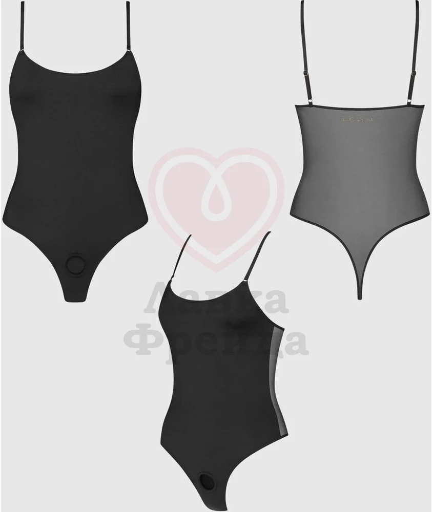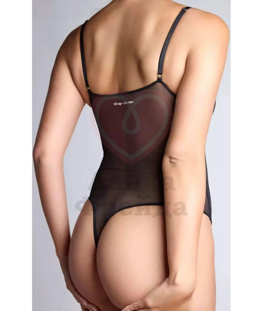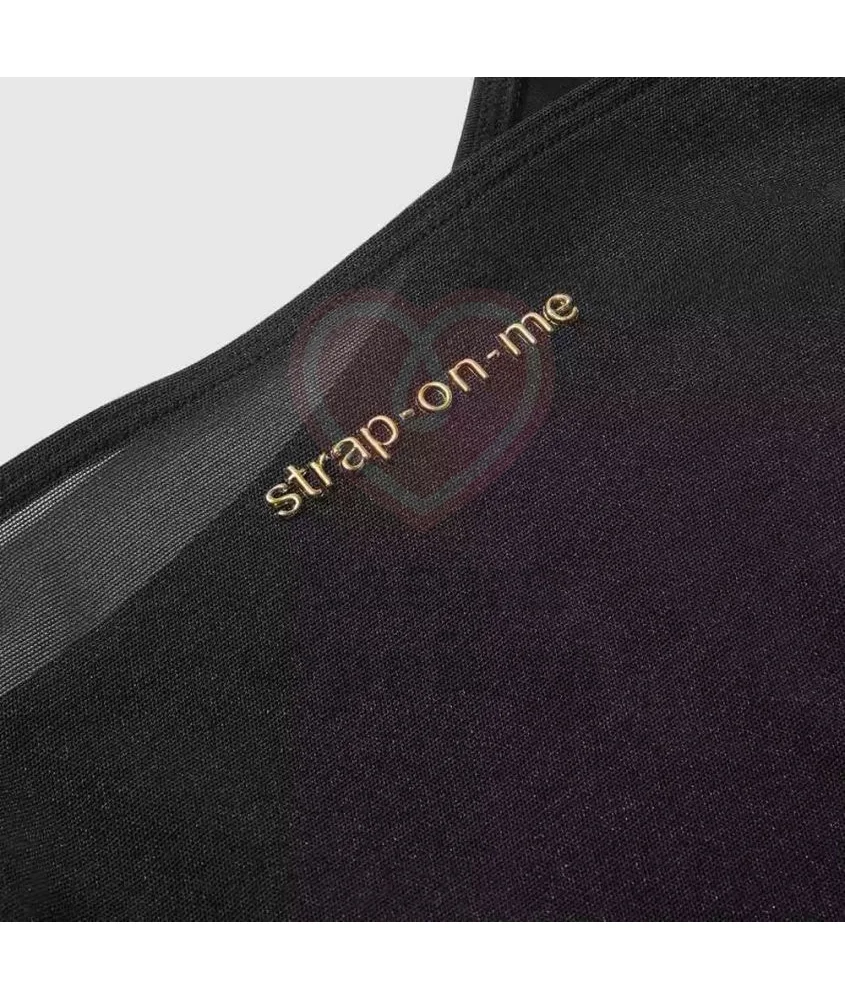 Strap-On-Me Harness Body Signature - элегантное боди с кольцом для страпона, которое будет красиво облегать фигуру и обеспечивать полную свободу движений в носке. Задняя часть сшита из прозрачного сетчатого тюля с золотистым логотипом на спинке, перед - плотная непрозрачная микрофибра. Тонкие регулируемые бретели, стринговая посадка, подчёркивающая линию ягодиц, незаметное эластичное кольцо для крепления страпона, которое не выбивается из общего визуального стиля. Боди также можно носить как самостоятельный элемент образа, сочетая его с любой другой одеждой. Рекомендуется стирка в деликатном режиме.