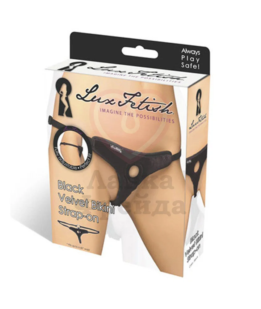 Чёрные трусики из нежного бархатного материала Black Velvet Bikini Strap-On – великолепное решение для страстной сексуальной игры. Колечко вшито прямо в трусики и походит для крепления вибраторов и фаллосов с присосками. Модель в виде сексуальных стринг с декоративным кольцом сзади невероятно возбуждает желание. Трусики невероятно мягкие благодаря вшитому в них поролону. Размер регулируется ремешками.