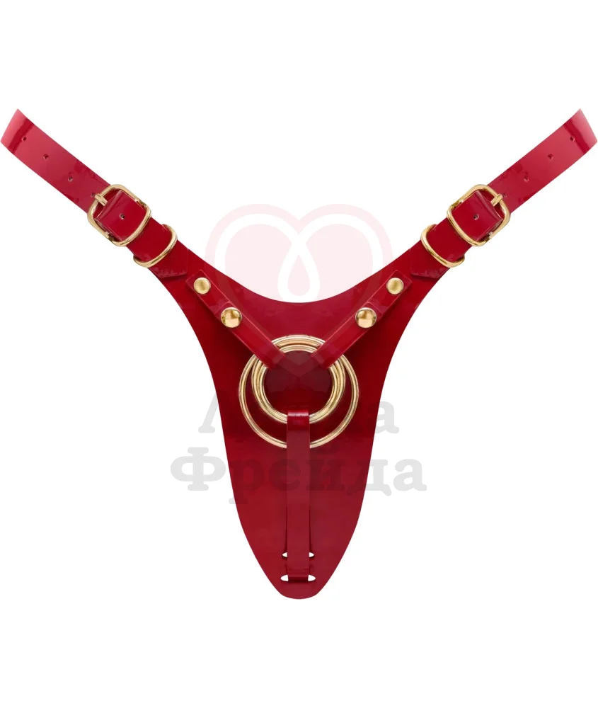 Пояс для страпона Lovely Planet Strap-On-Me Leatherette Harness Fabulous сделан из ярко-красной искусственной кожи, украшенной стальной фурнитурой. Передняя часть модели дополнена кольцом, куда можно вставить любой фаллоимитатор из серии Strap-On-Me, а задняя часть выполнена в виде стрингов, подчёркивающих линию ягодиц.